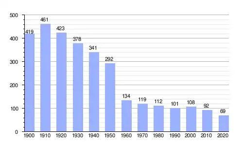 Gráfica de evolución demográfica de Casas de Sebastián Pérez entre 1900 y 2020 |