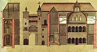 ![]() Detalle del cuadro Vista de Zaragoza en 1647, por J.B. Martínez del Mazo, a veces atribuido a su maestro, Velázquez. Los hitos representados corresponden a: 1 — Cimborrio de la Seo 2 — Torre mudéjar de la Seo 3 — Palacio de la Diputación del General del Reino de Aragón. 4 — Lonja 5 — Puente de piedra | ||
