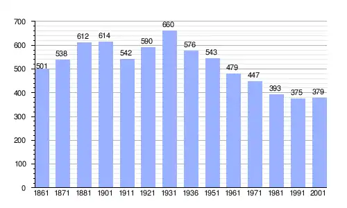Gráfica de evolución demográfica de Casasco d'Intelvi entre 1861 y 2001 |