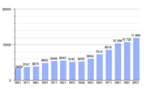 Gráfica de evolución demográfica de Casatenovo entre 1861 y 2001 |
