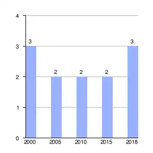 Gráfica de evolución demográfica de Atrio[2] entre 2000 y 2018 |