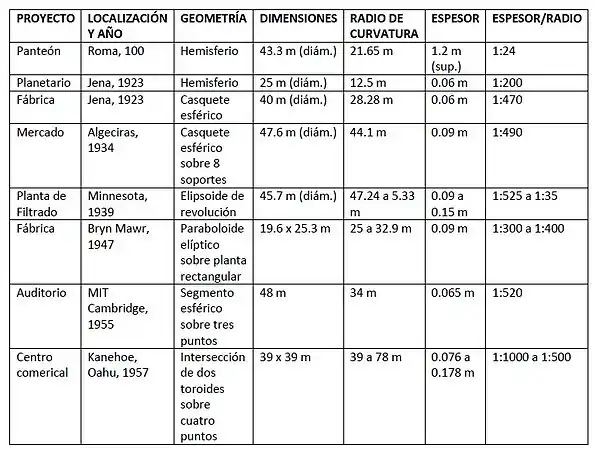 Es importante señalar que tan sólo las formas anticlásticas, como el paraboloide hiperbólico, pertenecen realmente a la era moderna. Su éxito inicial se debió a la necesidad de cubrir grandes áreas con métodos eficientes y baratos, sin tener que construir grandes estructuras de andamiaje. La eficiencia de estas estructuras se puede comprobar con la relación espesor radio de las cúpulas construidas en la historia: