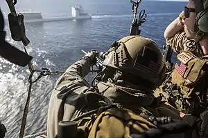 : Algunos cascos tipo MICH TC-2000/2001 usados por unidades del Mando de Operaciones Especiales de las Fuerzas del Cuerpo de Marines de los Estados Unidos junto al casco FAST[12] y por algunas unidades expedicionarias de Infantería de Marina[13] y de la Fuerza de Reconocimiento de la misma.[14] Usado por la Policía Militar de la Fuerza Aérea de EE.UU.[5] También tuvo uso limitado por los Rangers, SEAL de la Armada EE.UU., Delta Force y Boinas Verdes.[15]