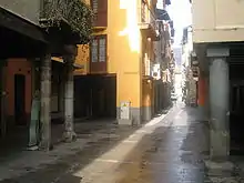Cada portal era flanqueado por dos torres, además de otras que había, al menos doce. La muralla seguía el trazado del Segre y después seguía por el convento de Sant Domènec, la calle de les Eres, la calle de la Muralla, bajando hasta la calle de Josep de Calassanç y hasta el fin del Carrer Major.
