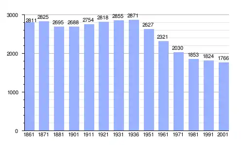 Gráfica de evolución demográfica de Caselle Landi entre 1861 y 2001 |