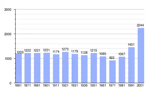 Gráfica de evolución demográfica de Caselle Lurani entre 1861 y 2001 |
