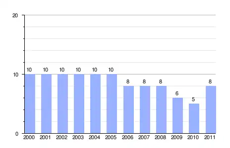 Población de derecho (2000-2011) según los censos de población del INE a 1 de enero de cada año.[1] |