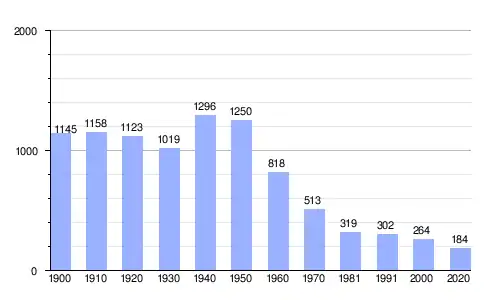 Gráfica de evolución demográfica de Casillas de Flores entre 1900 y 2020 |