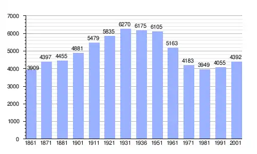Gráfica de evolución demográfica de Casina entre 1861 y 2001 |