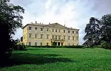 La duquesa María Amalia, esposa del duque Fernando de Borbón, encargó en 1775 al arquitecto de la corte Ennemond Alexandre Petitot la reconstrucción del pabellón de caza que se alzaba en el centro de la finca; en el sitio del edificio preexistente se construyó una elegante residencia ducal neoclásica, con un oratorio de torre contiguo, terminado en 1789.[1]