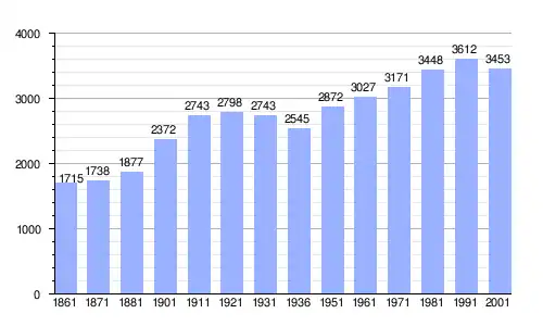 Gráfica de evolución demográfica de Casnigo entre 1861 y 2001 |