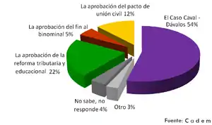 El 20 de abril de 2015, la encuestadora Cadem dio a conocer los resultados de la encuesta aplicada entre el 15 y 17 de abril a hombres y mujeres mayores de 18 años, habitantes de las 73 comunas urbanas con más de 50 mil personas que representan el 70,9 % del total del país. La encuesta reveló que el 54 % de la población recordará al Caso Caval como el principal legado del segundo gobierno de Michelle Bachelet.