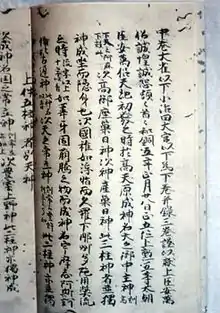 Desde el siglo, esta teoría histórica ha sido puesta en causa por varias generaciones de letrados neoconfucianistas. Sin rechazar totalmente la mitología ancestral, la escuela de Mito formuló las primeras críticas, pero éstas quedaron confinadas a un círculo de iniciados.[1] Hayashi Razan, otro neoconfucianista de la misma época, propone, en su Honchō Tsugan publicado en 1644, una alternativa al origen divino de Jinmu. Según él, es Taibo de Wu, un príncipe chino, quien sería el verdadero Jinmu. Este último no tendría entonces ningún origen divino.[1] Arai Hakuseki expone otra visión en su Tokushi Yoron, publicado en 1712, en el cual pone totalmente en causa el carácter sagrado de la Edad de los dioses.[1] En él, opta por un enfoque cercano al del evemerismo, teoría según la cual los dioses son personajes reales, deificados después de su muerte, y postula que los seres divinos sobre los cuales trata el Kojiki son en realidad humanos.[1][1] Otros intelectuales, como Yamagata Bantō y Data Chihiro, continúan, incluso en el siglo, poniendo en causa la veracidad de este mito confrontándolo a las «ciencias holandesas» (Rangaku).[1][1]