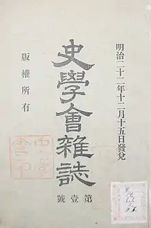 Durante los años 1870, el instituto histórico trabajaba muy poco en la escritura de una historia nacional. Su actividad estaba centrada en la recolección de fuentes escritas.[8] Su funcionamiento evolucionó al integrar la Universidad de Tokio en 1888. Los historiadores Kume Kunitake, Hoshino Hisashi y Shigeno Yasutsugu trabajaban en el seno del departamento de historia de la universidad y dirigían los trabajos realizados en la entidad.[7]