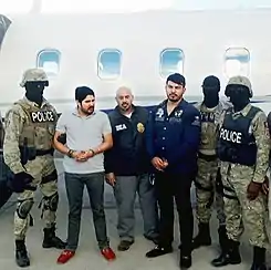 ![]() Campo (segundo de la izquierda) y Flores (tercero desde la derecha) tras su arresto | ||