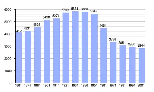 Gráfica de evolución demográfica de Casola Valsenio entre 1861 y 2001 |