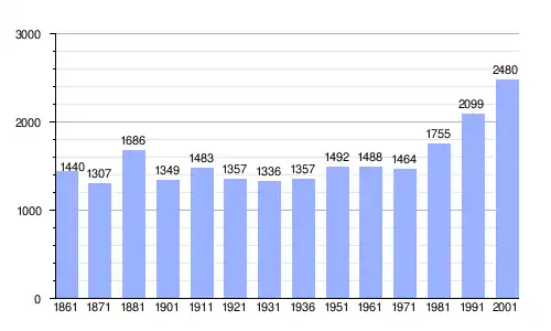 Gráfica de evolución demográfica de Casole Bruzio entre 1861 y 2001 |