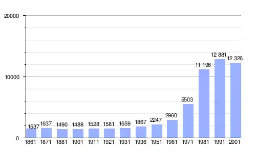 Gráfica de evolución demográfica de Cassina de' Pecchi entre 1861 y 2001 |