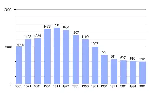 Gráfica de evolución demográfica de Cassinasco entre 1861 y 2001 |