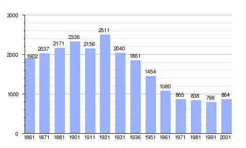 Gráfica de evolución demográfica de Cassinelle entre 1861 y 2001 |