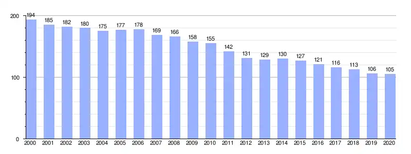 Gráfica de evolución demográfica de Castañeo[2] entre 2000 y 2020 |