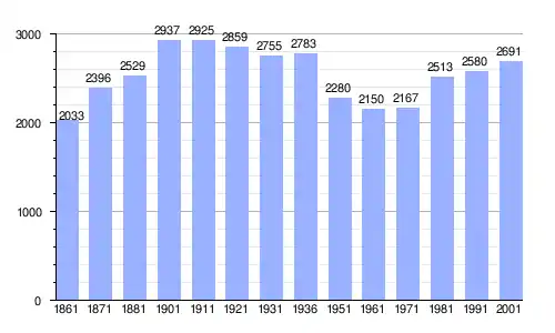 Gráfica de evolución demográfica de Castell'Alfero entre 1861 y 2001 |