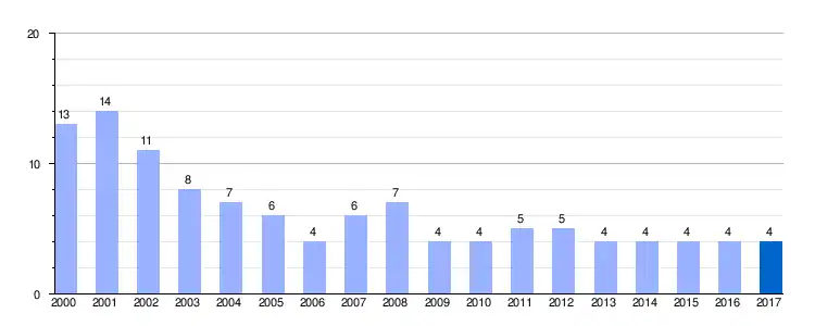 Gráfica de evolución demográfica de Castellanos de Bureba entre 2000 y 2017 |