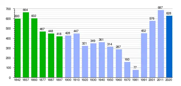 En 2017 el municipio —que tiene una superficie de 28,75 km²—[12] contaba en 2017 con una población de 670 habitantes y una densidad de población de 20,42 hab./km².