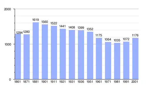 Gráfica de evolución demográfica de Castelletto Stura entre 1861 y 2001 |