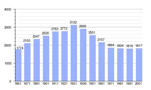 Gráfica de evolución demográfica de Castellina Marittima entre 1861 y 2001 |