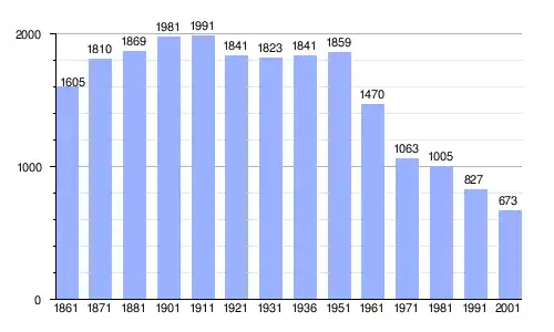 Gráfica de evolución demográfica de Castellino del Biferno entre 1861 y 2001 |