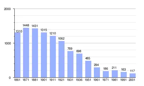 Gráfica de evolución demográfica de Castelmagno entre 1861 y 2001 |