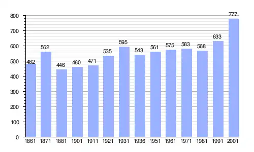 Gráfica de evolución demográfica de Castelnuovo Bozzente entre 1861 y 2001 |