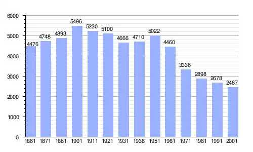 Gráfica de evolución demográfica de Castelnuovo di Val di Cecina entre 1861 y 2001 |