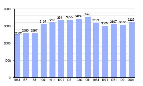 Gráfica de evolución demográfica de Castelplanio entre 1861 y 2001 |
