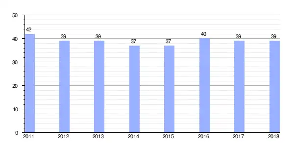 Gráfica de evolución demográfica de Castenda entre 2011 y 2018 |