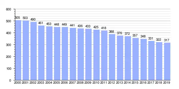 Gráfica de evolución demográfica de Castenda entre 2000 y 2019 |
