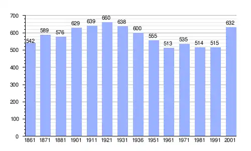 Gráfica de evolución demográfica de Castiglione Falletto entre 1861 y 2001 |