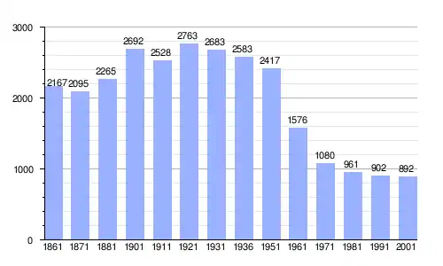 Gráfica de evolución demográfica de Castiglione a Casauria entre 1861 y 2001 |