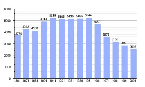 Gráfica de evolución demográfica de Castiglione d'Orcia entre 1861 y 2001 |