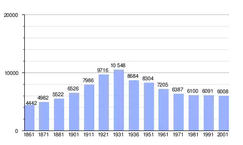 Gráfica de evolución demográfica de Castiglione dei Pepoli entre 1861 y 2001 |