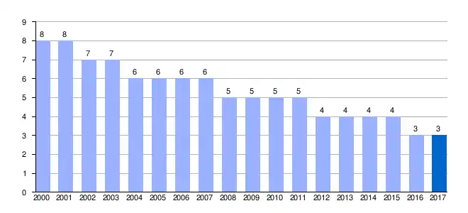 Gráfica de evolución demográfica de Castillejo de Evans[3] entre 2000 y 2017 |