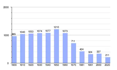 Gráfica de evolución demográfica de Castillejo de Martín Viejo entre 1900 y 2020 |
