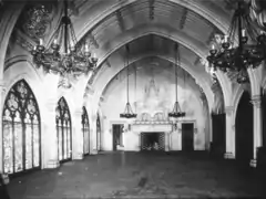 - Acabados de paredes: lienzos pintados, roble, caoba, damasco de seda y brocado, dorado, paneles de yeso.