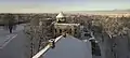 Fotografía aérea del castillo en la que se señala la planta que tenía alrededor de 1685 y las siguientes áreas: 1, fuerte principal; 2, primer vorburg; 3, segundo vorburg; y 4, tercer vorburg.