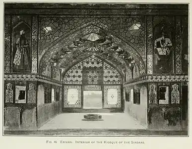 - Paredes interiores con retratos de personajes en el Palacio del Sardar