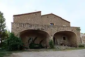 El cuerpo principal presenta un tejado a dos vertientes, con un gran portal adovelado y ventanas alineadas en la fachada, ante una terraza apoyada sobre arcos rebajados. Una torre de fortificación cilíndrica situada en el centro de la masía sobresale por encima del conjunto y se conserva también parte de otra torre de planta rectangular
