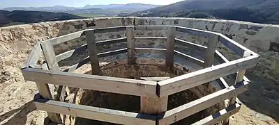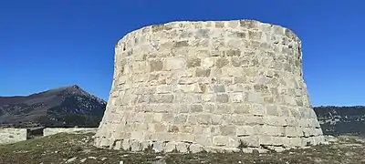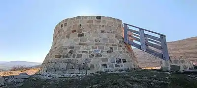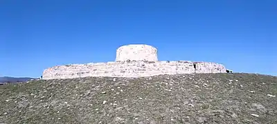Únicamente quedan restos del muro exterior, de un cerco circular interior y de la torre del homenaje. Según Jimeno Jurío estamos ante el mítico Sajrat Qays.[4][3]