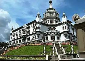 Los materiales con los que los diferentes cuerpos independientes están levantados son hierro, cemento, piedra y madera para los acabados. Los pabellones tienen una mezcla de siete estilos arquitectónicos diferentes,[2] entre los que destacan el neogótico, neorrenacentista y rococó con mezcla de elementos locales, mismos que se pueden apreciar sobre todo en las esculturas hechas totalmente en el país, y que representan imágenes como la Virgen del Quinche.[3]