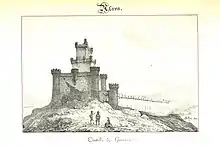 El castillo-fortaleza de Guevara era un ejemplo muy importante de la arquitectura militar de la época. Fue construido en el siglo XV a imitación del castillo de Sant Angelo de Roma (aunque se supone que se reconstruyó sobre un antiguo castillo del siglo X) con buena piedra de sillería y con gruesos muros de metro y medio en donde existían los huecos de muchas saeteras.